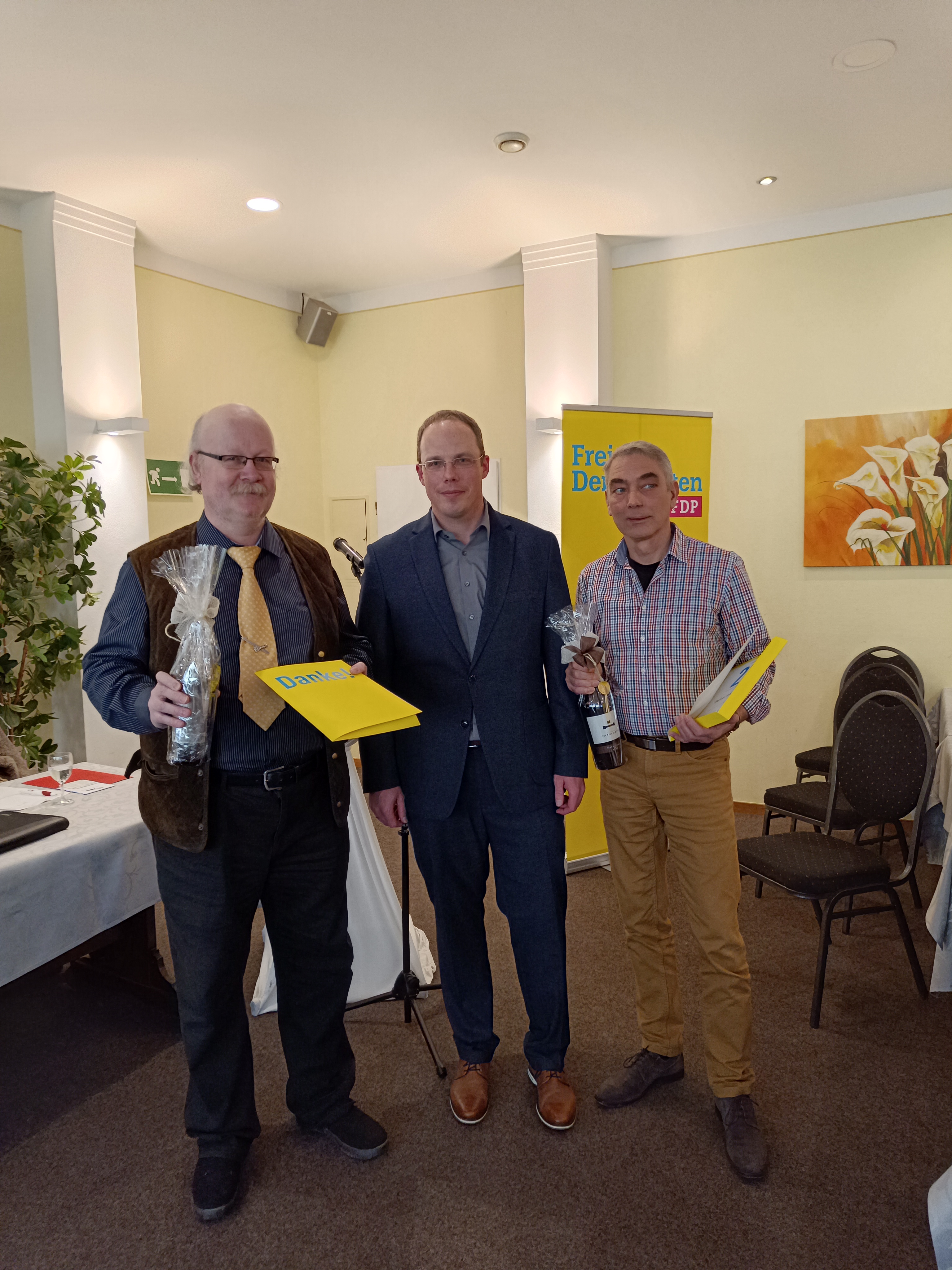 Darüber hinaus standen 300 Jahre FDP-Mitgliedschaft zu ehren auf der Tagesordnung. Mit Gustav Anton aus Gummersbach, der nun bereits 50 Jahre Mitglied ist und Kurt Steinhausen aus Nümbrecht, der die 60 Jahre Mitgliedschaft erreicht hat, sogar zwei Liberale Urgesteine.